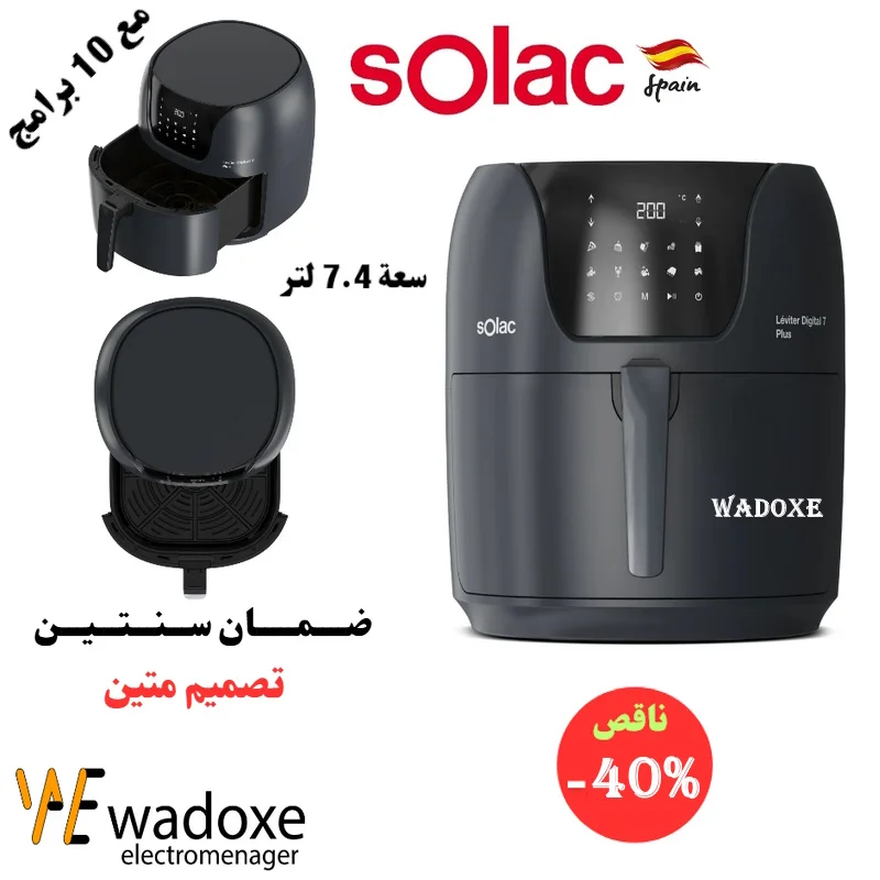 قلايه هوائية بدون زيت 5 لتر مع 12 برامج + إقتصادية مع ضــــمـــــان ســـنـــتـــيـــن - SOLAC
