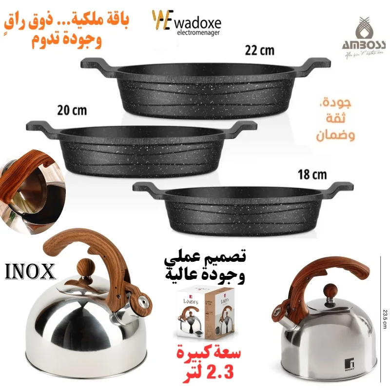 مجموعة راقية تتكون من 3 قطع : مقلاة أصلية غير قابلة للالتصاق - طلاء جرانيت - CEM