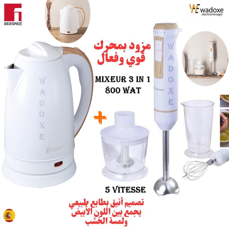 خلاط يدوي متعدد الوظائف 1000 واط + وعاء خاص للعصير - BERGNER